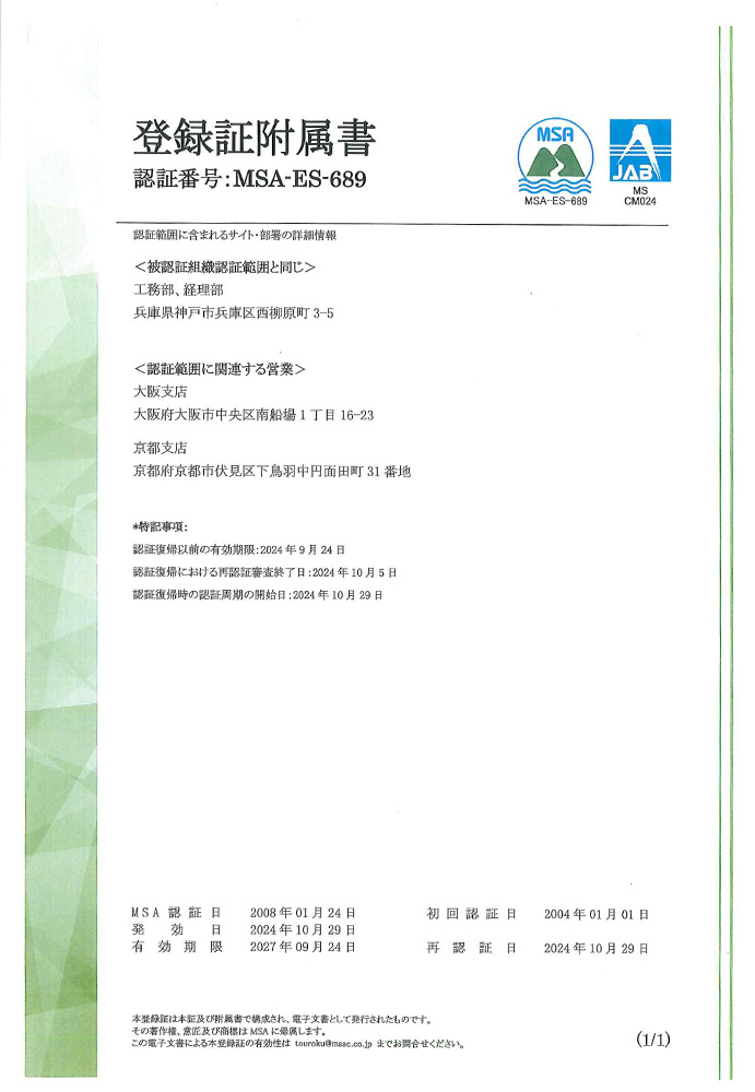 環境マネジメントシステムの国際規格「ISO14001」の認証を取得しています。
