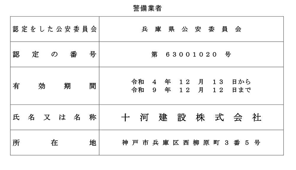警備業法第6条(標識の掲示義務等)に基づき警備業者の認定を受けたことを示す「標識」を掲示いたします。